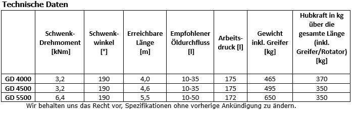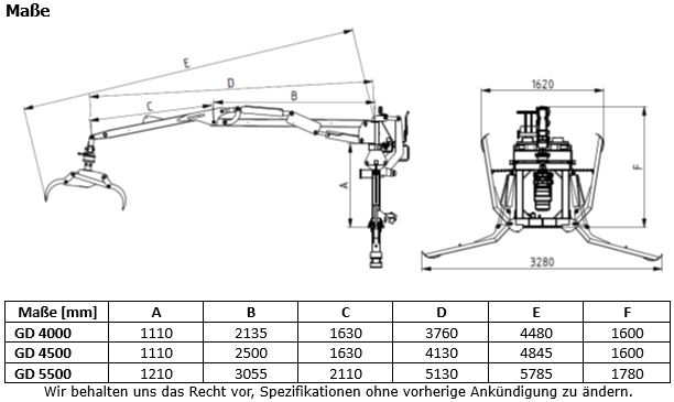 - Hubkraft Ladekran bei max. Reichweite von 4,00 m = 260 kg